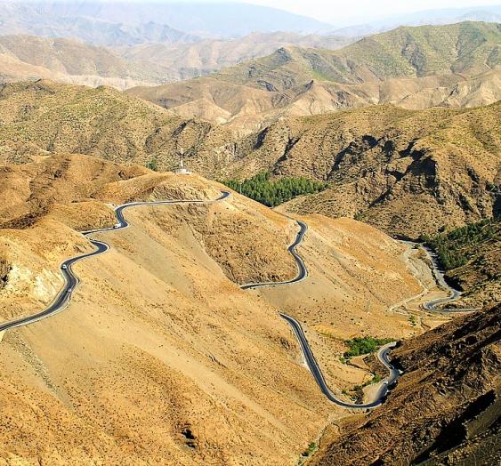 Passo di Tizi n'Tichka Il percorso del Tizi-n-Tichka è davvero straordinario e affascinante: si passa da un paesaggio verdissimo punteggiato da boschi salendo tra tornanti impressionanti, fino al passo con verdi pascoli circondati da montagne imponenti, per poi scendere nel versante di Ouarzazate attraversando un paesaggio arido e deserto. Il contrasto è davvero impressionante.